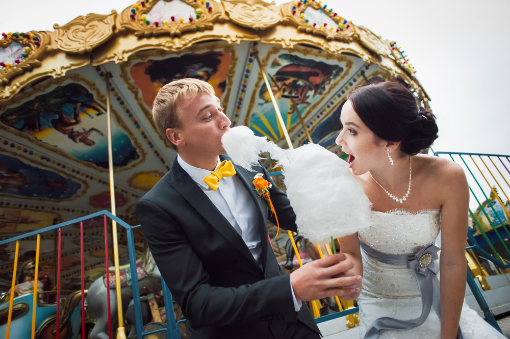 This type of creativity is why we absolutely love a photo of brides with cotton candy bouquets. Instead of spending hundreds of dollars on fancy floral bouquets, the bride from this wedding decided to have a much tastier option as the basis for her celebration.